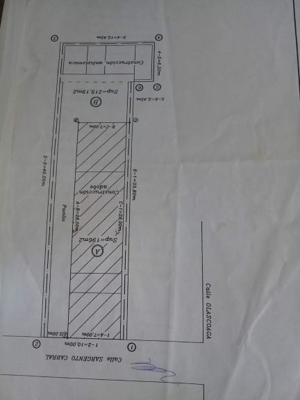 SAVOY propiedades VENDE UBICADISIMO, OPRTUNIDAD VALOR TERRENO, IDEAL DESARROLLO INMOBILIARIO. Lote rectangular de 415 m2 con 10 metros de frente y 40 de fondo, en el mismo existe una construcción de adobe a demoler de 265 m2 y un departamento interno de construcción sismo resistente (habitable) a reciclar, construido en 2 plantas de 138 m2 teniendo en Planta baja 2 dormitorios, baño, living comedor y cocina y en Planta Alta 2 dormitorios, baño y cocina comedor.